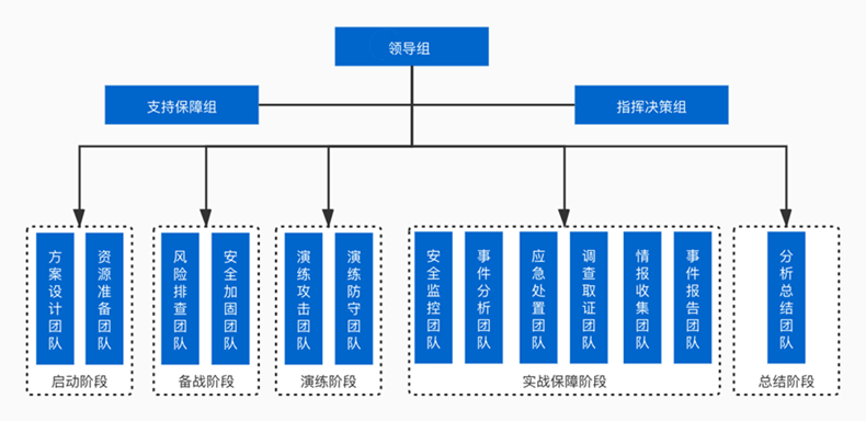 ÔÚÆô¶¯½×¶Î£¬Ó¦×ÅÊÖ½¨ÉèÒ»¸ö·Ö¹¤Ã÷È·µÄÍøÂçÇå¾²¹¥·ÀÑÝÁ·Ö°ÄÜÍŶÓ£¬ÒÔ°ü¹ÜÇå¾²×Ô²éÊÂÇé»ñµÃ³ä·Ö¿ªÕ¹£¬Çå¾²·À»¤ÄÜÁ¦»ñµÃÓÐÓõÄÑéÖ¤¡£Òò´Ë±ØÐèÃ÷È·Çå¾²°ü¹ÜÍŶӵÄ×éÖ¯¼Ü¹¹ºÍÖ°Ôð»®·Ö¡£Îª×öºÃÑÝÁ·ÊÂÇ飬ÎÒÃǽ¨ÒéÒÔÈçÏ·½·¨½¨ÉèÇå¾²°ü¹ÜÍŶӵÄÕûÌå¼Ü¹¹£º