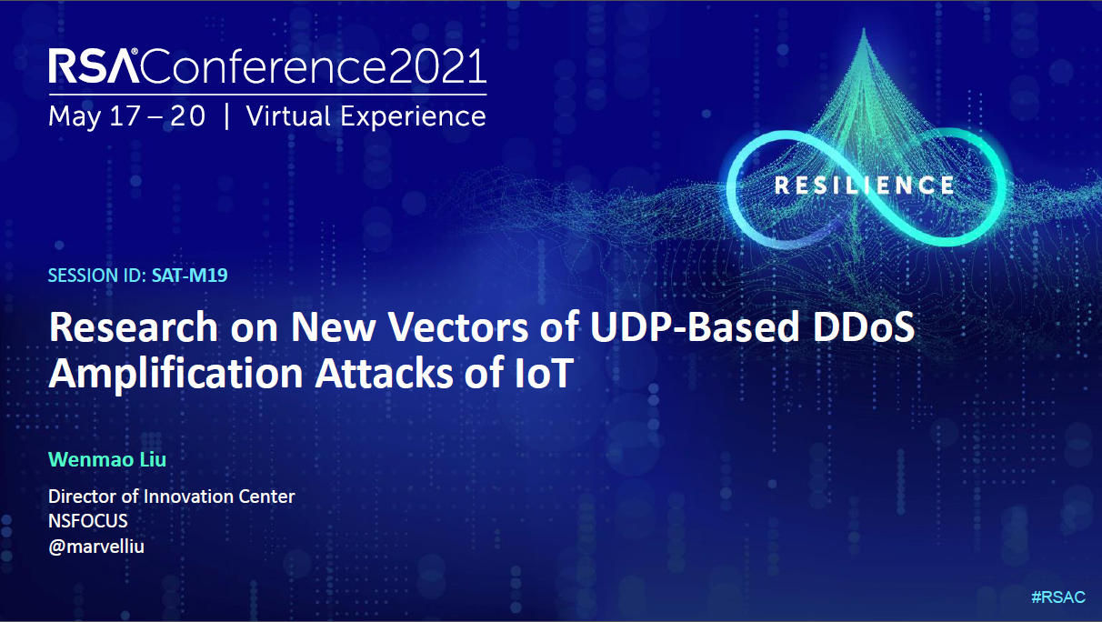 RSA×÷ΪȫÇò¹æÄ£×î´óµÄÍøÂçÇå¾²ÐÐÒµ¾Û»á£¬Æù½ñÒѾÙÐÐ30½ì£¬Ò»Ö±×ÅÑÛÓÚÍÆ¶¯È«ÇòÍøÂçÇå¾²½çµÄ¹²Ïí¡¢Á¢ÒìÓëǰ½ø¡£2021ÄêRSA´ó»á£¬¾ÅÓÎÀÏ¸ç¿Æ¼¼ÍÑÓ±¶ø³ö£¬ÔÚÎïÁªÍøÇå¾²ÂÛ̳½ÒÏþÌâΪ¡¶ÎïÁªÍøÖлùÓÚUDPµÄDDoSÐÂÐÍ·´Éä¹¥»÷Ñо¿¡·£¨Research on New Vectors of UDP-Based DDoS Amplification Attacks of IoT£¬[SAT-M19]£©µÄÖ÷ÌâÑݽ²£¬ÕâÊÇÖйúÇå¾²³§ÉÌÊ״εÇÉÏRSAC´ó»áµÄÖ÷ÌâÑݽ²Îę̀¡£¾ÅÓÎÀÏ¸ç¿Æ¼¼Á¢ÒìÖÐÐÄ×ܼàÁõÎÄí®²©Ê¿´ú±í¾ÅÓÎÀÏ¸ç¿Æ¼¼µÄÎïÁªÍøÇå¾²Ñо¿ÍŶӾÙÐÐÁËÖ÷ÌâÑݽ²¡£
