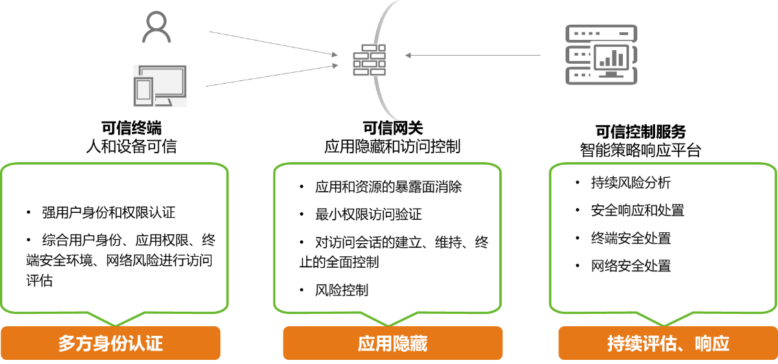 ÔÚÁãÐÅÍÐÇéÐÎÖУ¬ËùÓÐͨѶ¶¼±»ÊÓΪ²»ÐÅÍУ¬³ý·ÇÕâÖÖÐÅÍйØÏµÄܹ»»ñµÃ֤ʵ£¬²¢ÇÒÕâÖÖ֤ʵҲ±ØÐèÊÇ¶à·½ÃæµÄ֤ʵ£¬Öն˲ãÃæÒªÊµÊ±¼à²âÖ÷»ú״̬£¬°üÀ¨Ö÷»úÈëÇÖ¼ì²â£¬Ö÷»ú·À»¤ÏìӦʹÃüµ÷Àí£¬Ö÷»úÇéÐÎÏÝÚåÉèÖã¬Ö÷»úɱ¶¾ÒÔ¼°Ö÷»ú»ùÏßµÈÇéÐΡ£Éí·Ý²ãÃæÍ¨³£Ê¹ÓÃË«ÒòËØÈÏÖ¤»ò¶àÒòËØÈÏÖ¤µÄÔöÇ¿£¬Í¨¹ý¶ÌÐÅ¡¢Ö¸ÎÆ¡¢ÁîÅÆ¶àÖÖÈÏÖ¤·½·¨½¨ÉèÒ»¸ö¶àÌõÀíµÄÉí·ÝÑéÖ¤²ãÃæµÄ·ÀÓù£¬Ö°Ô±ÔÚ¾­ÓÉÈÏÖ¤Ö®ºó²Å»ªÊµÏÖ¶ÔÓ¦ÓòãÃæ»á¼û¡£ÔÚÍøÂç²ãÃæ»áÒ»Á¬ÅжÏÖ÷»úÐÐΪ£¬Öն˽ÓÈëÍøÂçÖ®ºó¾Í»á¶ÔÆäÍøÂçÐÐΪ¾ÙÐмì²â£¬×ÝÈ»×°±¸Ñ¬È¾ÁËÐÂÓ±µÄÀÕË÷Èí¼þ£¬×°ÖÃÔÚÉè±¹ØÁ¬Ä·À²¡¶¾Èí¼þÎÞ·¨¼ì²â£¬µ«ÔÚÍøÂçÉÏ£¬¿ÉÒÔͨ¹ýÍøÂçÁ÷Á¿¼ì²âµ½×°±¸µÄɨÃè»òÕß±©Á¦ÆÆ½âµÈÐÐΪ¡£